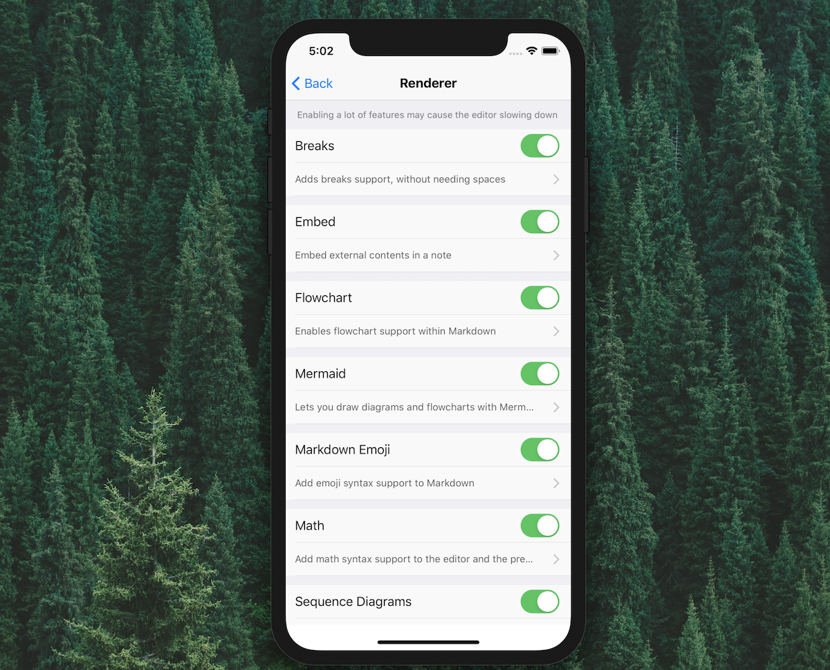 Some plugins are bundled in the mobile app as Markdown renderer options. Go to Preferences > Markdown Renderer and you will see the list of available options: