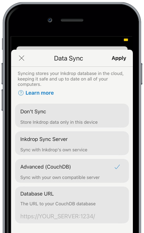 - Advanced (CouchDB) - Sync with your own compatible server