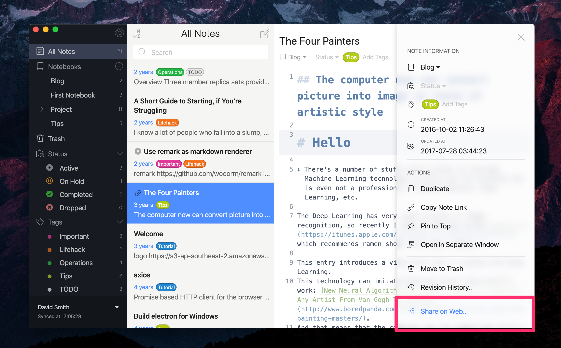Publishing notes on the web comes in handy if you are working on a team project or just passing along useful tips to friends. It allows you to share your Markdown notes with anyone, even those who don't use Inkdrop.