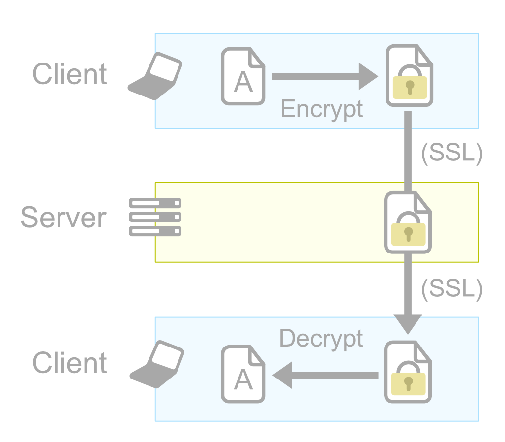 End-to-end encryption (E2EE) is a method of secure communication that prevents third-parties from accessing data while it's transferred from one end system or device to another. Having data encrypted with this method will make it almost impossible for someone to tap your network, to access or steal our disk and get access to the original data. All your notes, notebooks, tags and attachments are encrypted using AES-256 encryption on your own device when transporting them to the Inkdrop server. A common key is generated when you sign up to Inkdrop. This key, along with an initialization vector, is used to encrypt your data in GCM (Galois/Counter Mode). The key is also encrypted while stored on disk, with a 256-bit AES key derived with PBKDF2 from your login password.