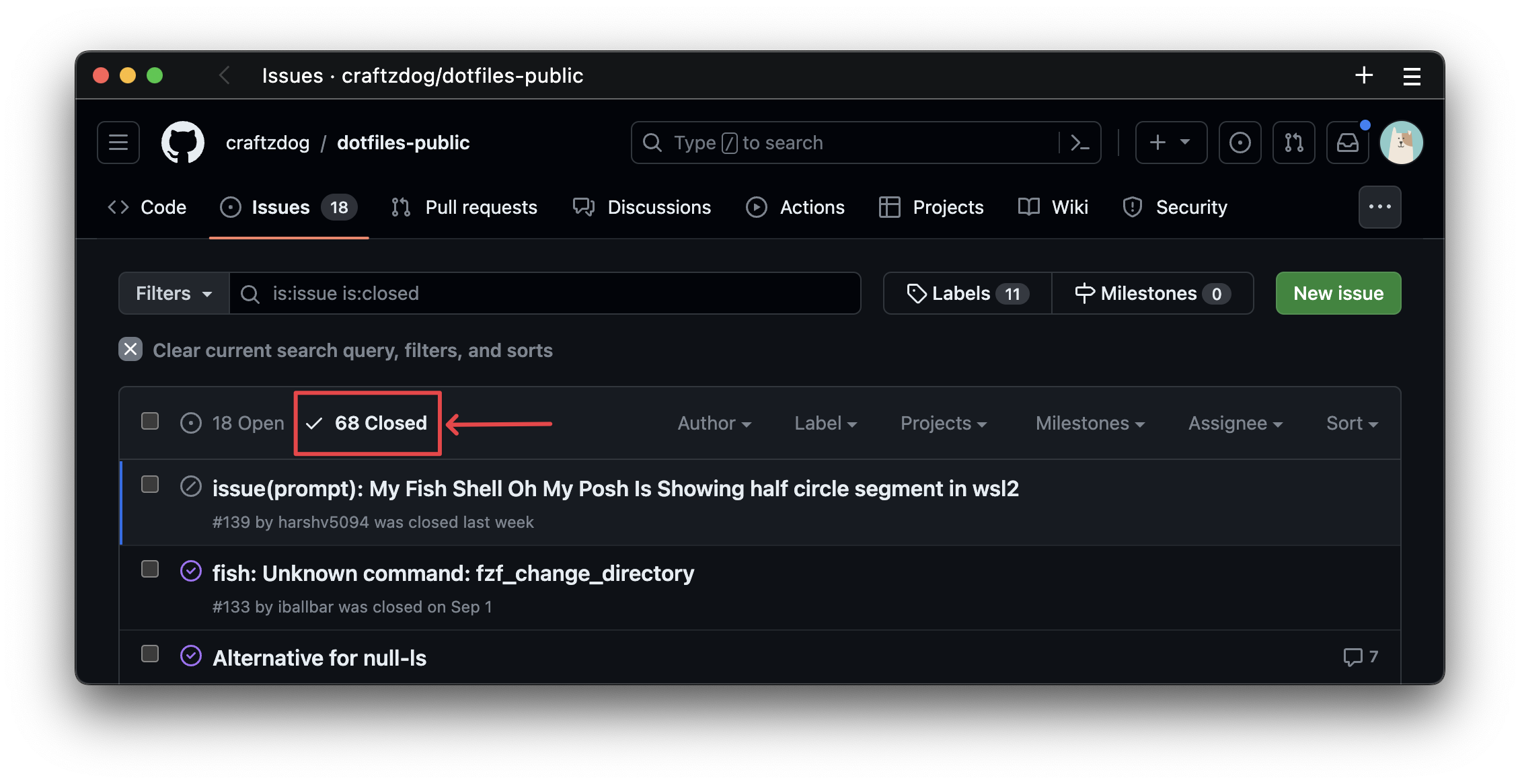 GitHub Issues have three main statuses: 'Open', 'Closed', and 'Closed as not planned'. These statuses help maintainers and contributors to track the progress and lifecycle of issues and tasks within the project. Closed issues are hidden by default so that developers can focus on active issues. You can still show closed issues by clicking the Closed tab, which is handy for reviewing past issues.