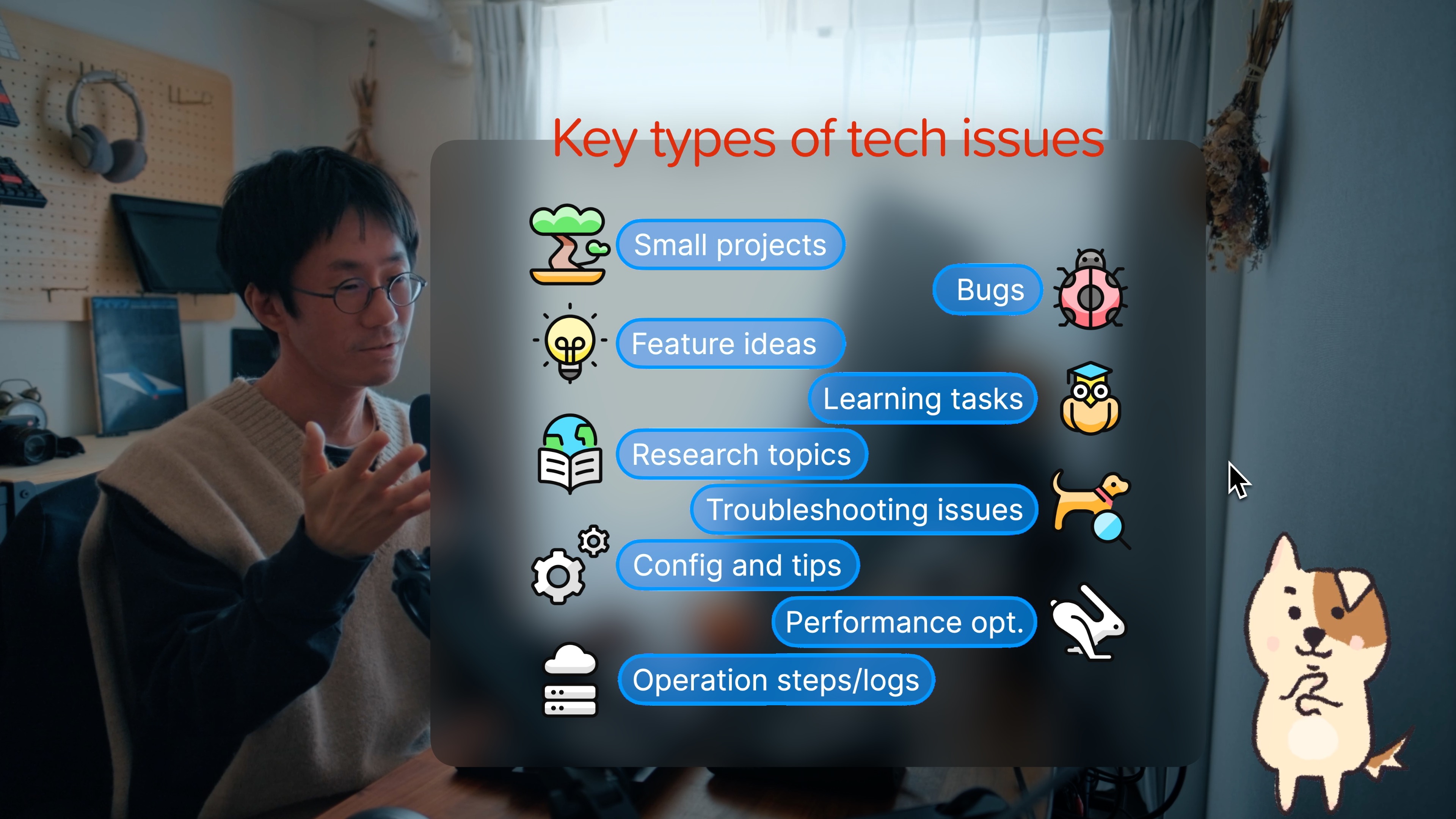 To practice thinking of 'What is an issue?' when creating a new note, it's helpful to know the key types of tech issues so that you can avoid making notes with an abstract title and mixed topics.
